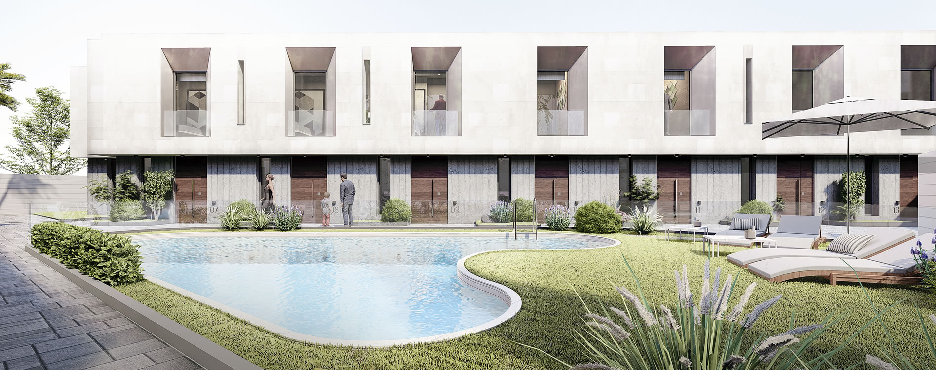El Residencial Ática Homes consta de 13 viviendas, cada una con garaje, trastero y acceso a una piscina comunitaria, diseñadas para ofrecer confort y eficiencia. La estructura de las viviendas cuenta con cimentación de losa de hormigón armado y micropilotes, garantizando estabilidad y resistencia. Los cerramientos exteriores están realizados con piedra natural, como la caliza, aportando una estética elegante y duradera.