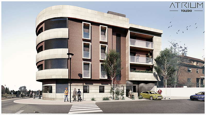 El proyecto residencial Atrium Toledo, construido por Marmitoledo, se caracteriza por su enfoque en la calidad y el confort, destacando un diseño moderno y una ejecución impecable. Las fachadas del edificio combinan materiales como piedra natural y ladrillo visto, proporcionando un equilibrio entre estética y eficiencia energética, con aislamiento térmico y acústico en toda la construcción.